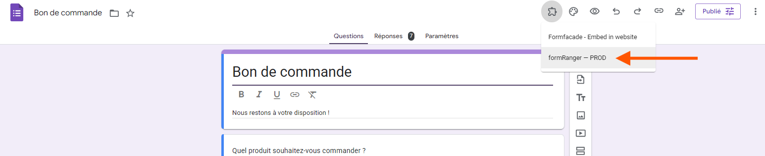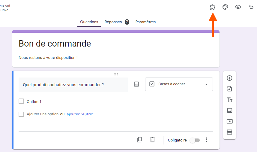 - Ouvrez votre formulaire Google et cliquez sur le bouton en forme de pièce de puzzle