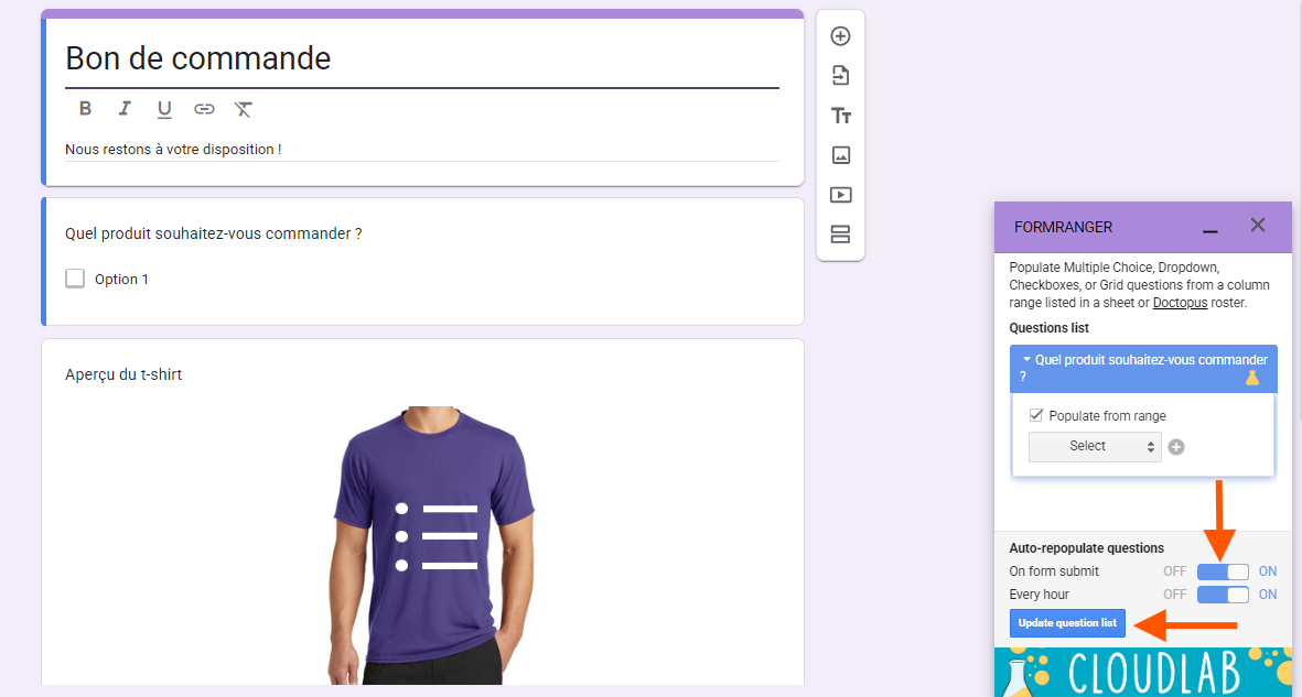 Form Ranger est un module complémentaire conçu pour Google Forms, qui permet d’importer automatiquement des options de réponse à partir de données stockées dans Google Sheets.