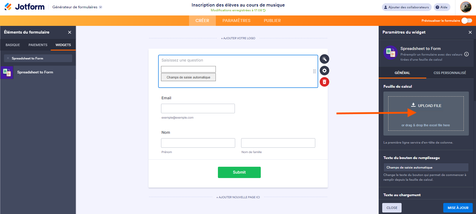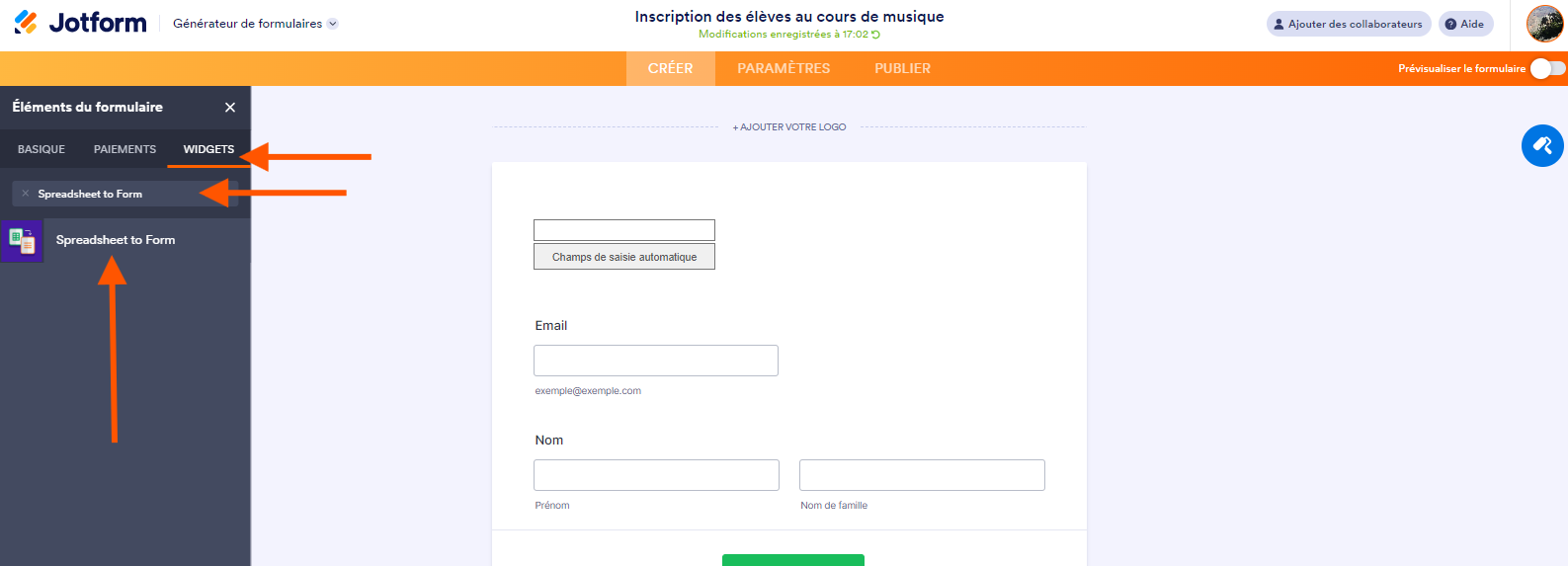Comment utiliser le widget Feuille de calcul vers formulaire dans Jotform ?