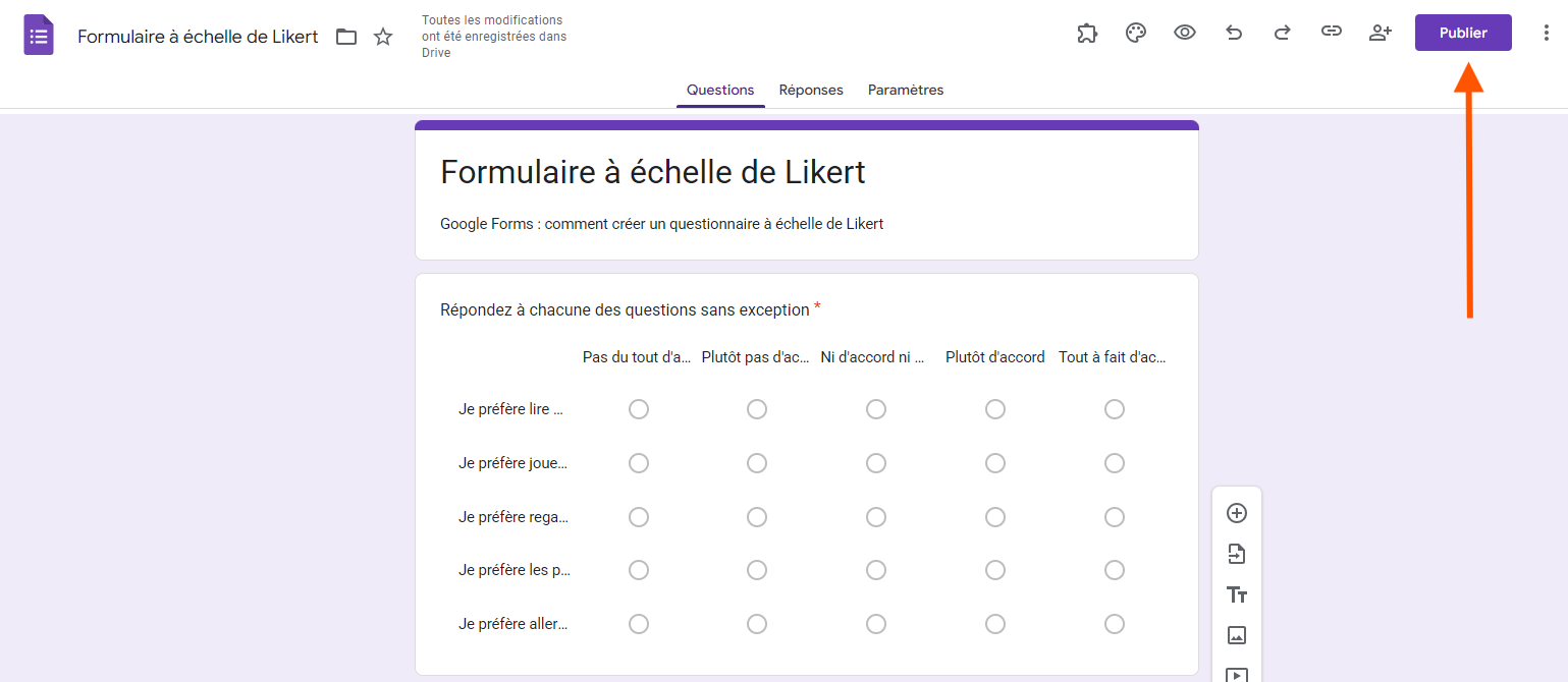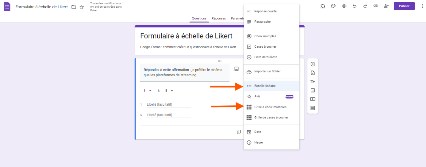 Création d’une échelle de Likert dans Google Forms