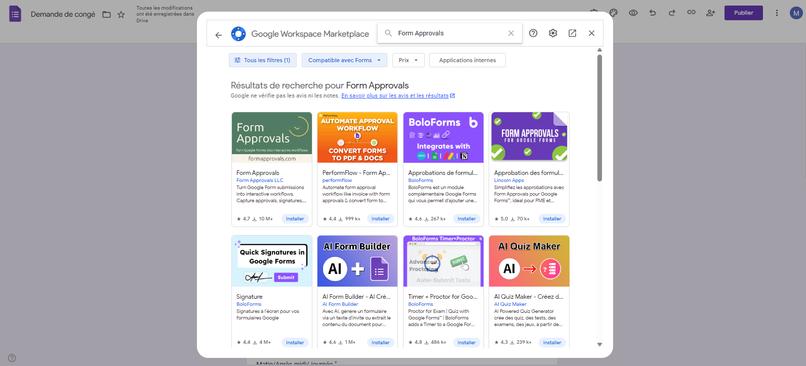Dans le monde des affaires hautement numérisé d’aujourd’hui, les flux d’approbation gagnent en efficacité lorsqu’ils sont gérés par des outils d’automatisation. Google Forms, largement utilisé pour créer des formulaires et des enquêtes personnalisés, ne propose pas de fonctionnalité d’approbation native. Cependant, il est possible de contourner cette limite en utilisant le module complémentaire Form Approvals, qui permet de mettre en place des processus d’approbation directement dans Google Forms.
