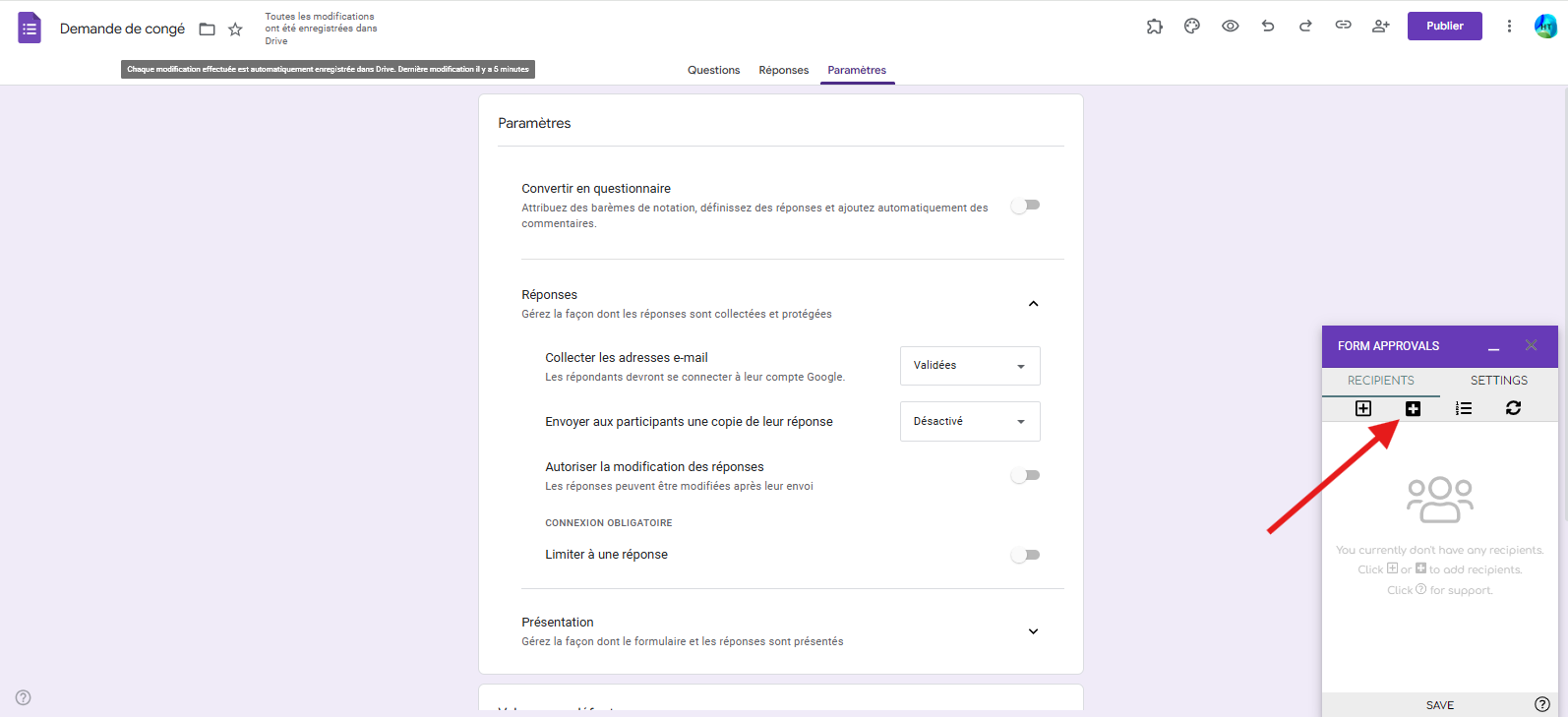 - Retournez au formulaire Google que vous souhaitez transformer en flux d’approbation.