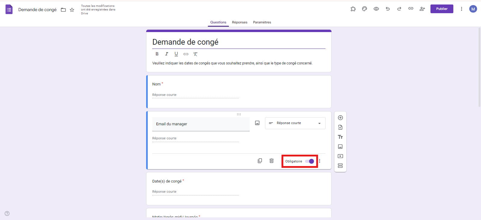 - Rendez ce champ obligatoire en activant le bouton Obligatoire