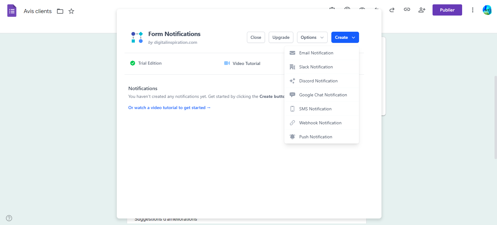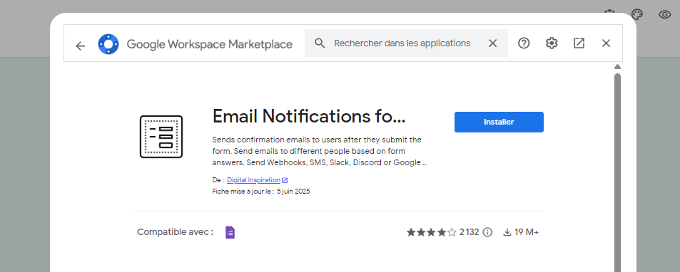 - Recherchez « Email Notifications for Google Forms »