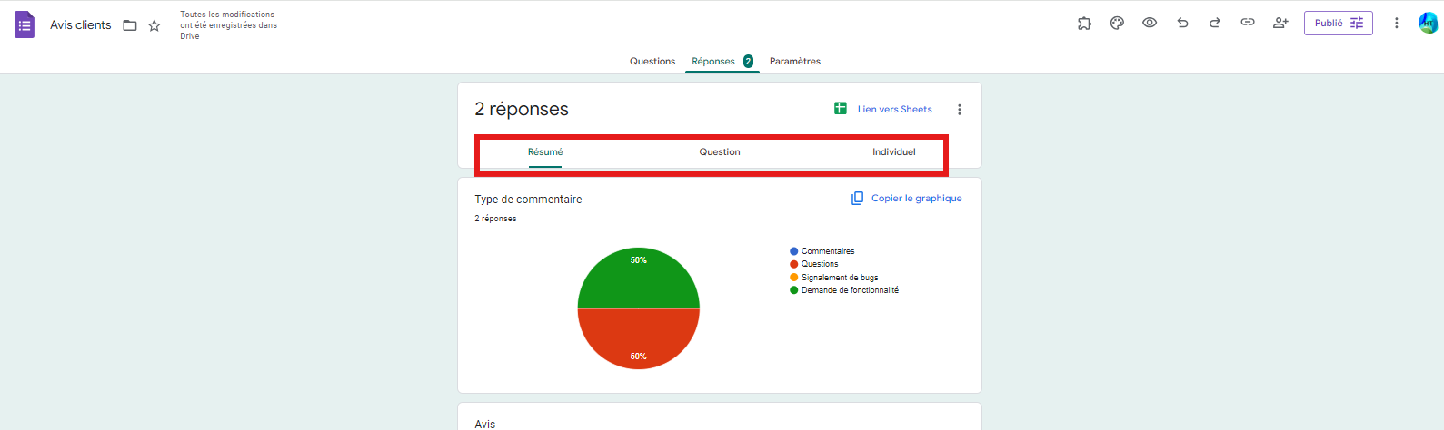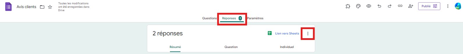 Option 2 : consulter les réponses dans l’onglet Réponses