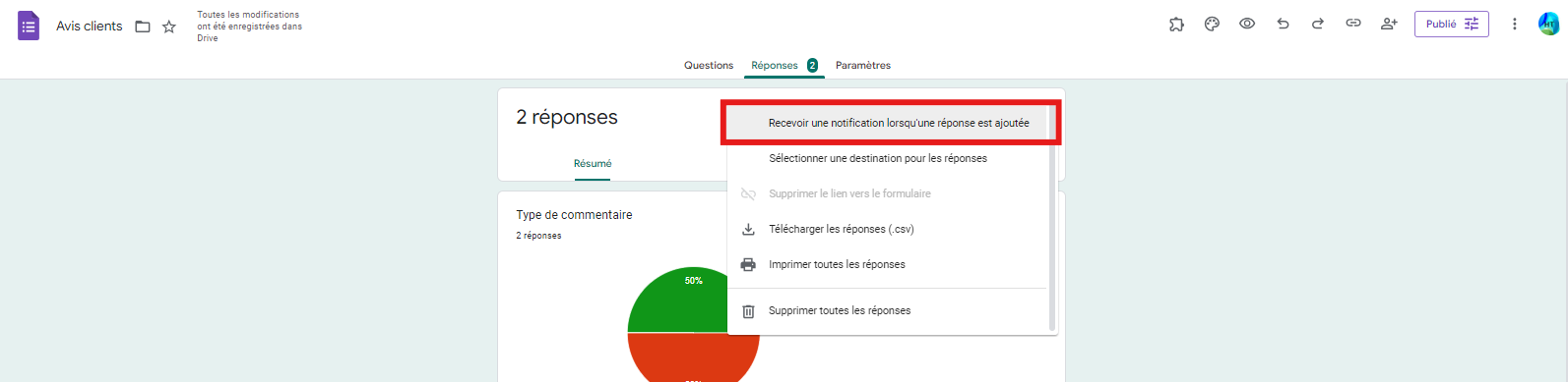 Option 1 : activer les notifications par email pour les réponses aux formulaires