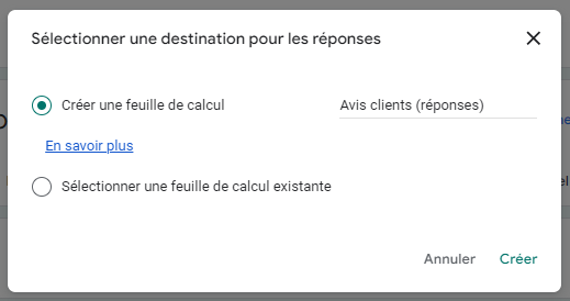 Option 3 : envoyer les réponses de Google Forms à une feuille Google Sheets
