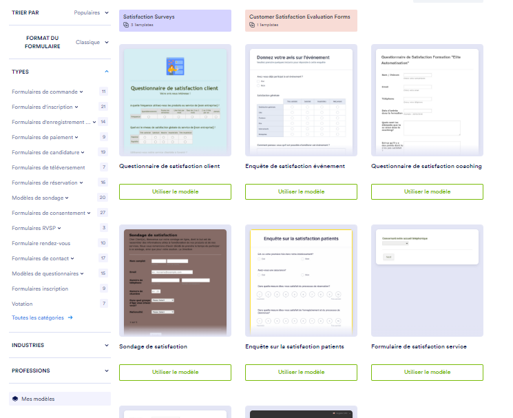 - Recherchez “enquête de satisfaction client” dans la bibliothèque de modèles et sélectionnez-en un.