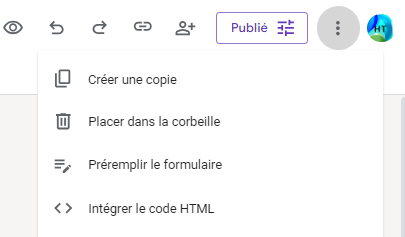 Si vous êtes déjà familier avec Google Forms, vous savez que le préremplissage est facile. Il suffit de sélectionner Préemplir le formulaire dans le menu à trois points en haut à droite.