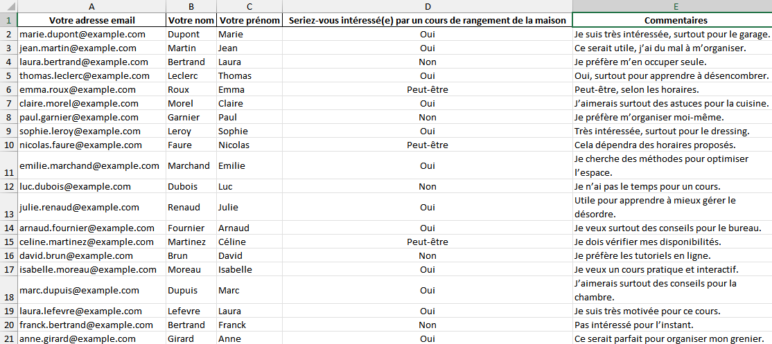 Sans perdre de temps, Julie crée alors un formulaire Google qu’elle envoie à ses proches pour évaluer leur intérêt pour un atelier sur l’organisation de la maison. Une nouvelle aventure venait de commencer.