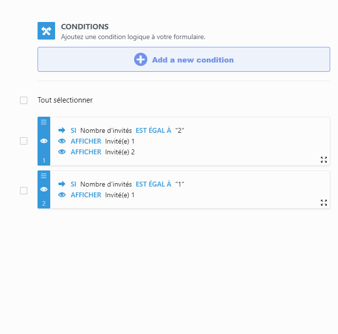 - Ajoutez une nouvelle condition et sélectionnez l’option Afficher/Masquer un champ.
