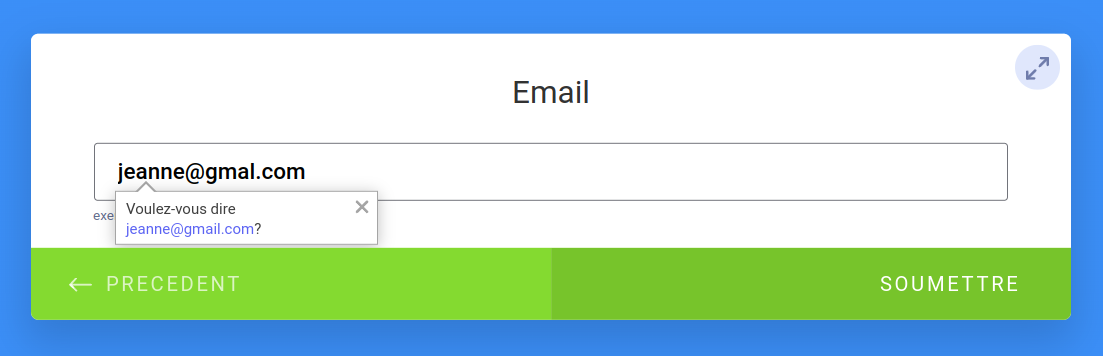 Le champ Email dispose également d’une fonction intégrée de vérification des erreurs et de suggestion pour les adresses e-mail mal orthographiées.
