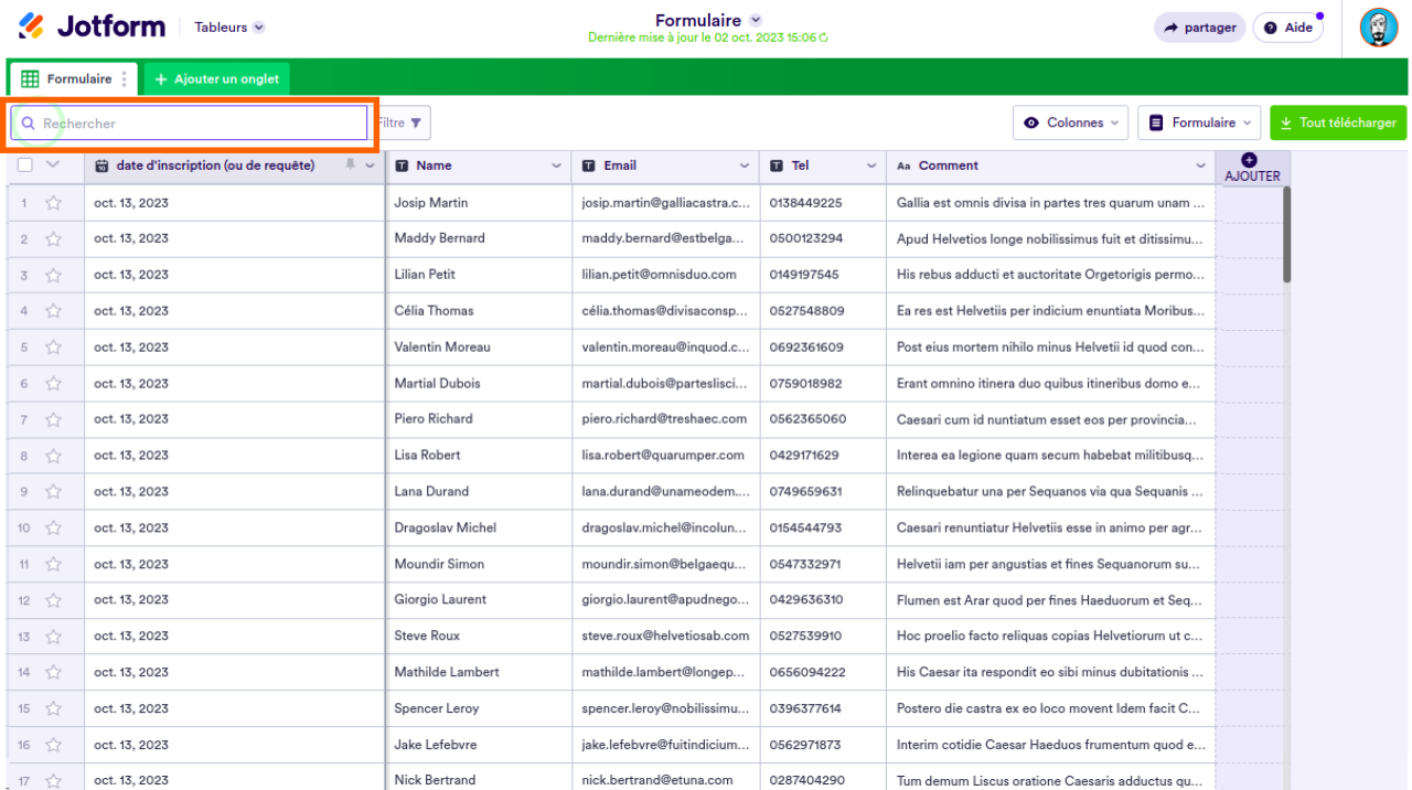 Pour plus d’informations, voyez notre guide expliquant comment rechercher une soumission depuis la Table de soumission.
