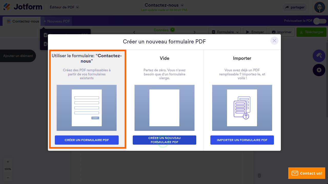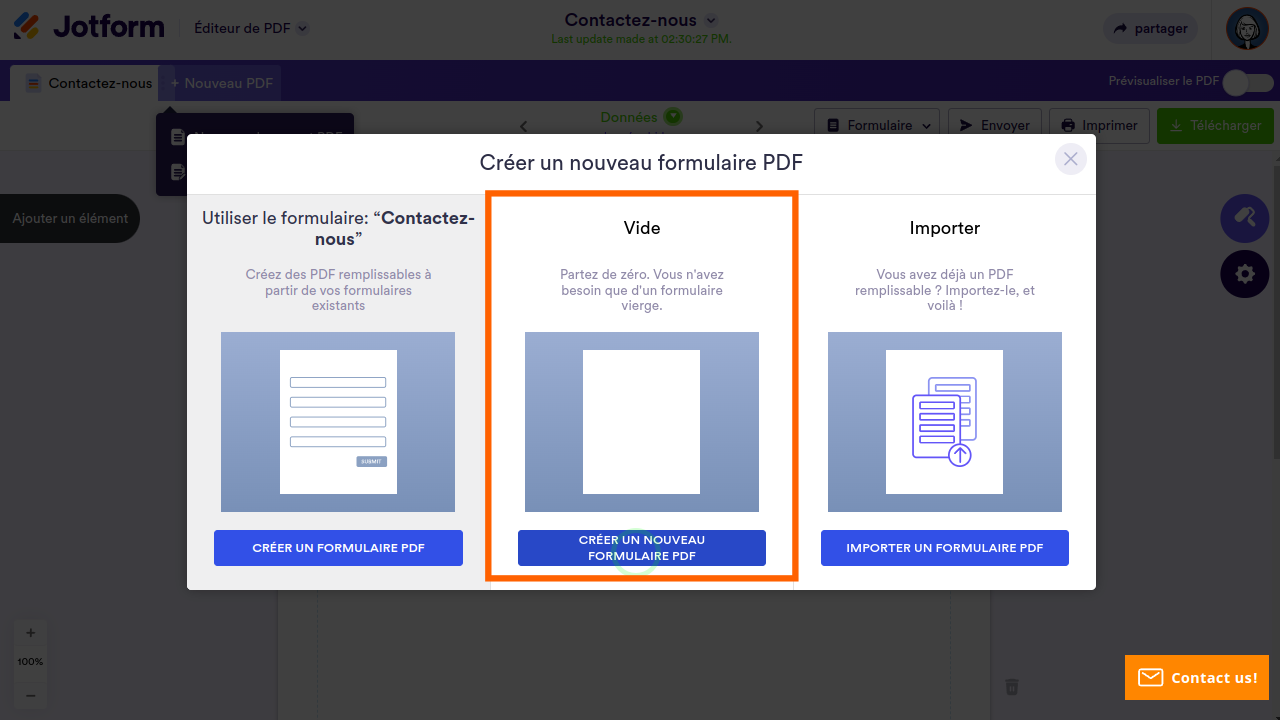 - Cliquez sur l’option Nouveau formulaire PDF.