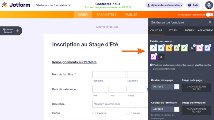 Nous proposons également des associations de couleurs accessibles et prêtes à l’emploi pour les formulaires, tant au format classique qu’au format carte. Ces associations de couleurs sont spécialement conçues pour offrir une meilleure accessibilité. Ils sont marqués d’une petite icône de corps humain dans le concepteur de formulaires.