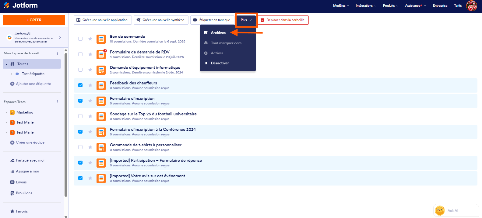 Vous pouvez également archiver plusieurs formulaires en même temps. Voici comment procéder :