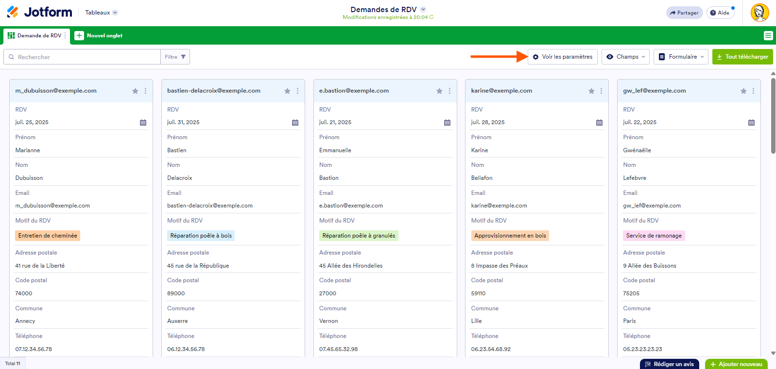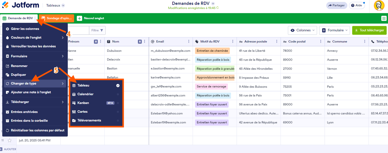 Et voilà, vous avez modifié avec succès le type de vue de vos soumissions dans les Tableaux Jotform.