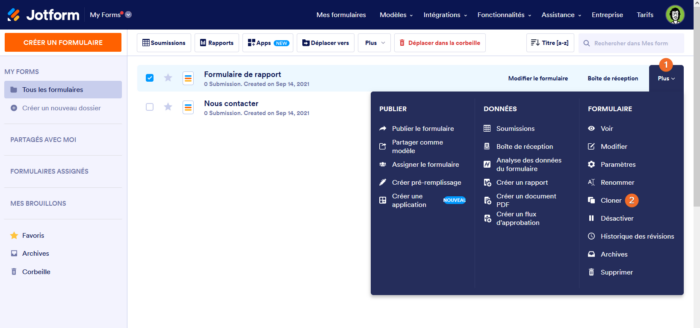 - Le clonage crée un nouveau formulaire dans votre compte, ce qui compte dans le nombre total de formulaires.