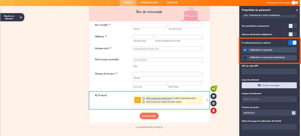 Configurer des emails de notification de paiement incomplet
