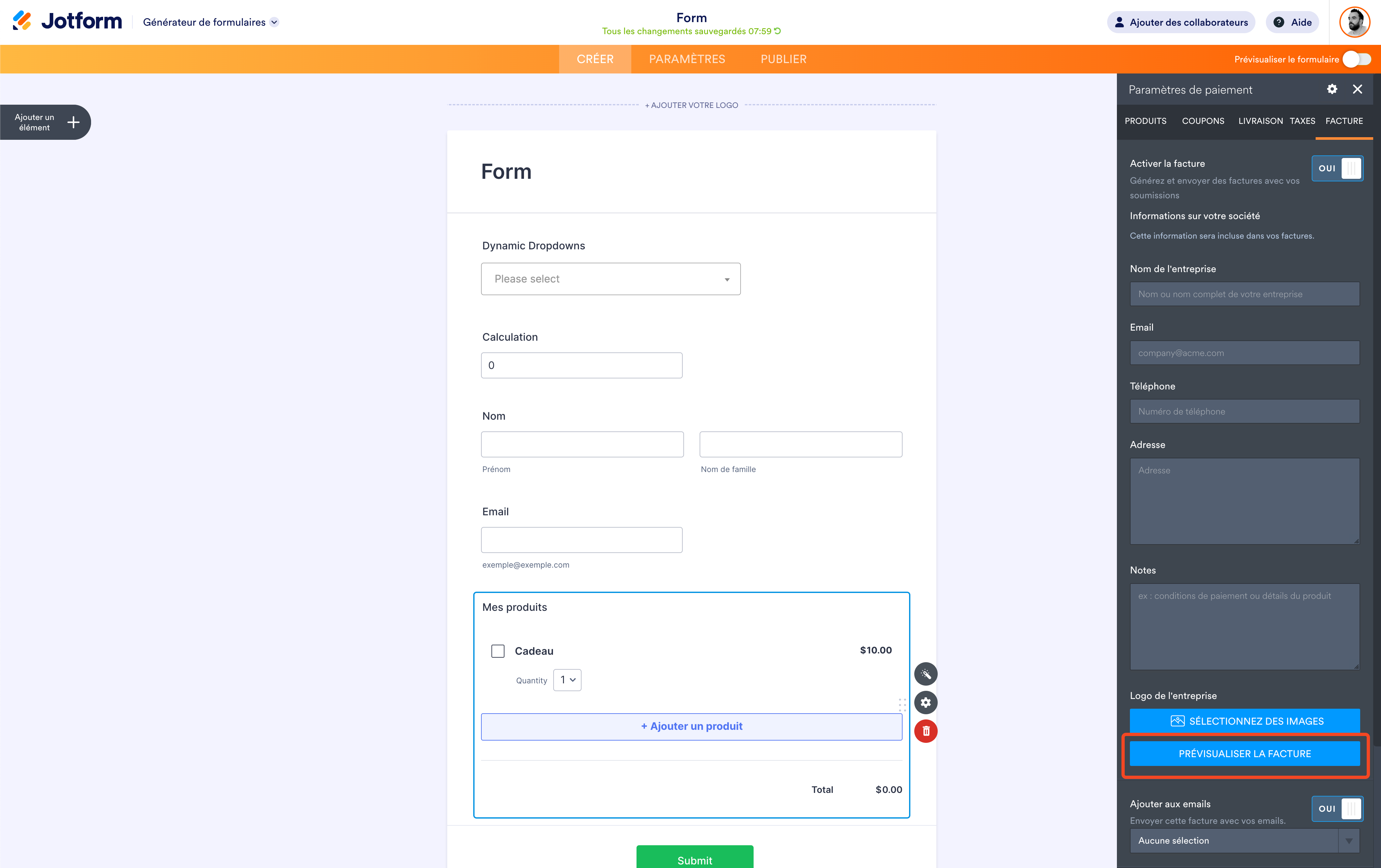 Et voilà. Vous pouvez maintenant générer une facture pour vos formulaires de paiement.