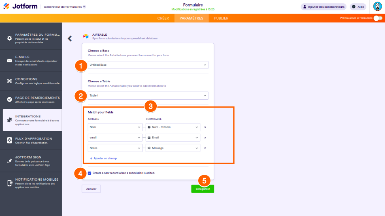 - Faites correspondre les champs de votre table Airtable avec les champs de votre formulaire.