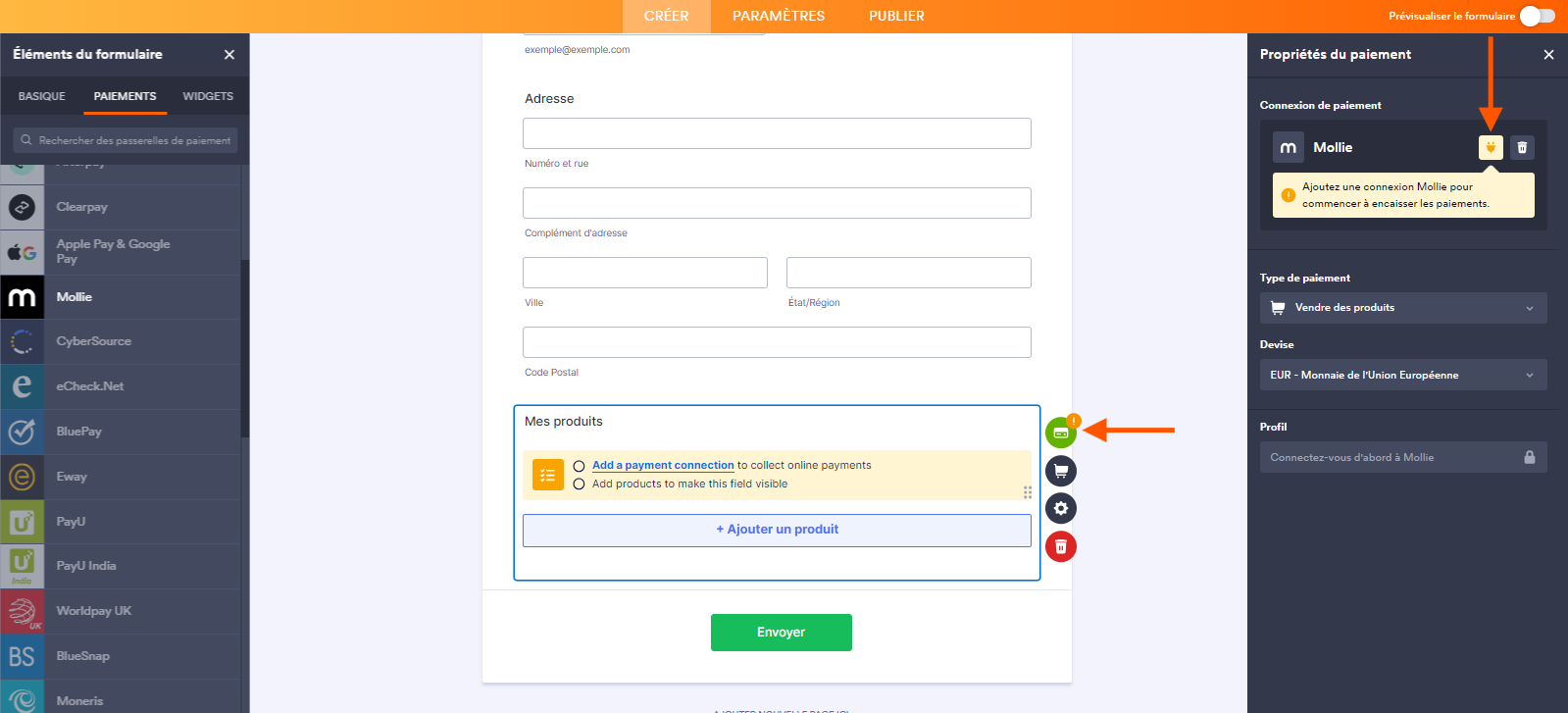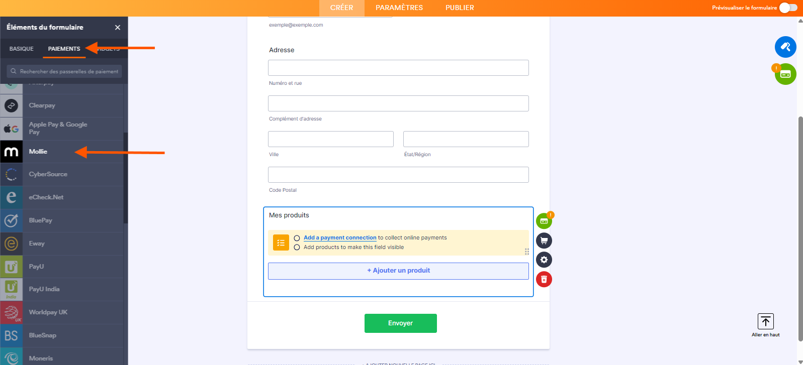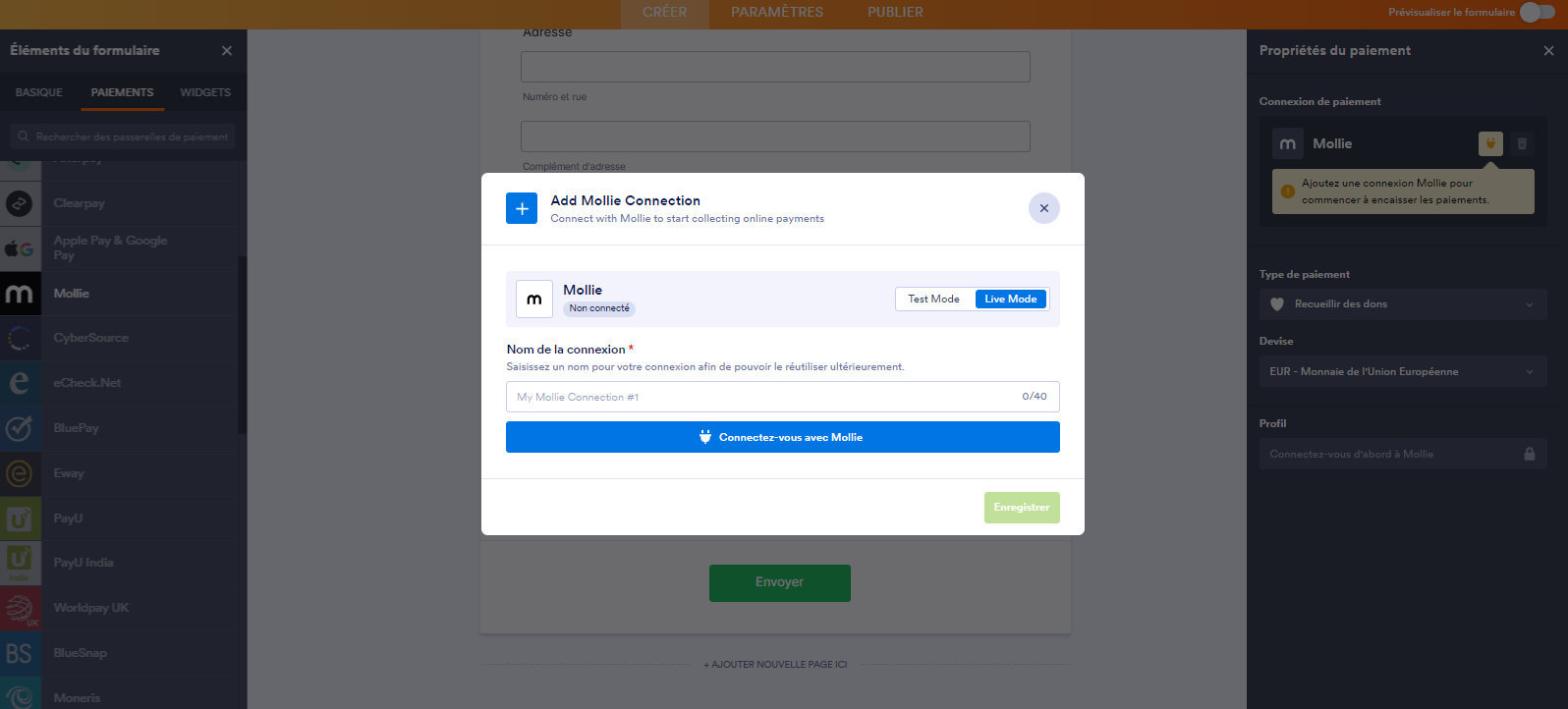 Voici comment procéder pour intégrer la plateforme de paiement Mollie à votre formulaire :