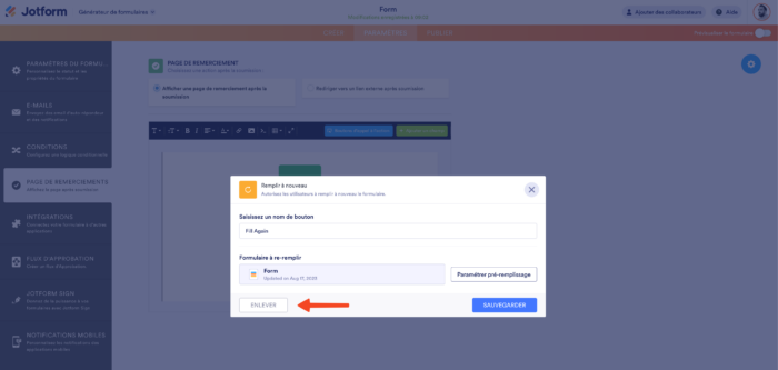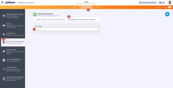 - Modifiez la Page de remerciement de votre formulaire.