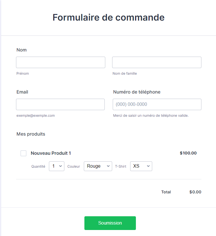 Voici à quoi ressemble notre bon de commande final: