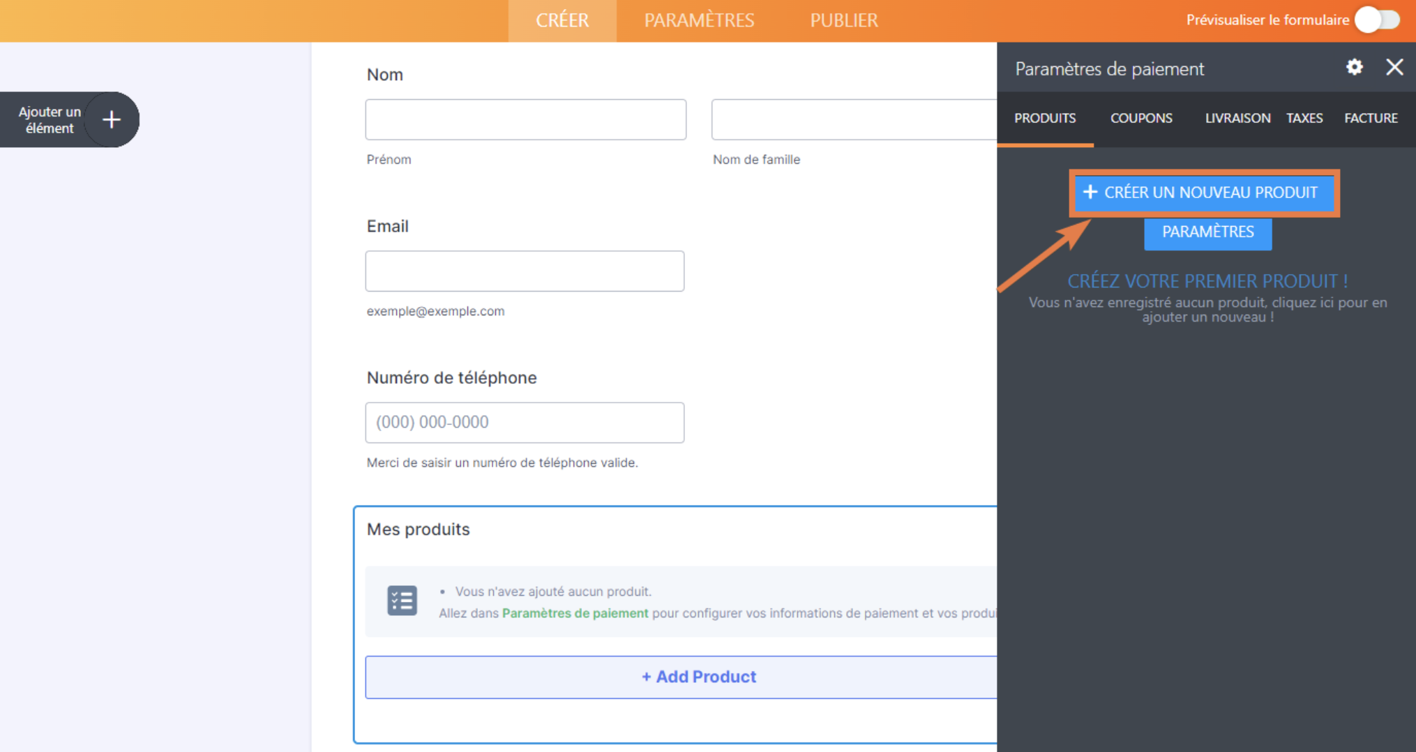 - Sur l’écran suivant, cliquez sur le bouton Créer un nouveau produit.
