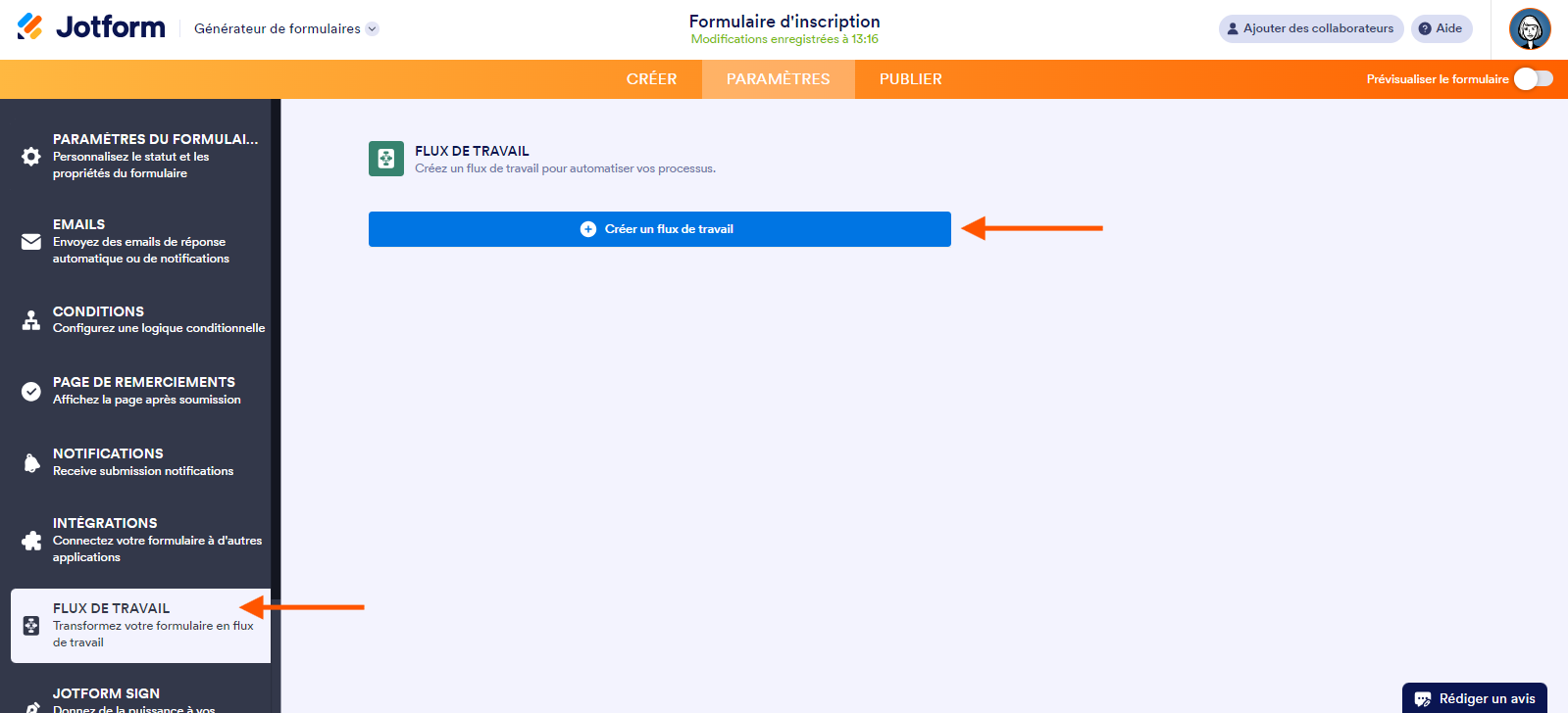 Si vous avez créé un formulaire, voici comment créer un flux de travail en quelques étapes :