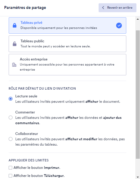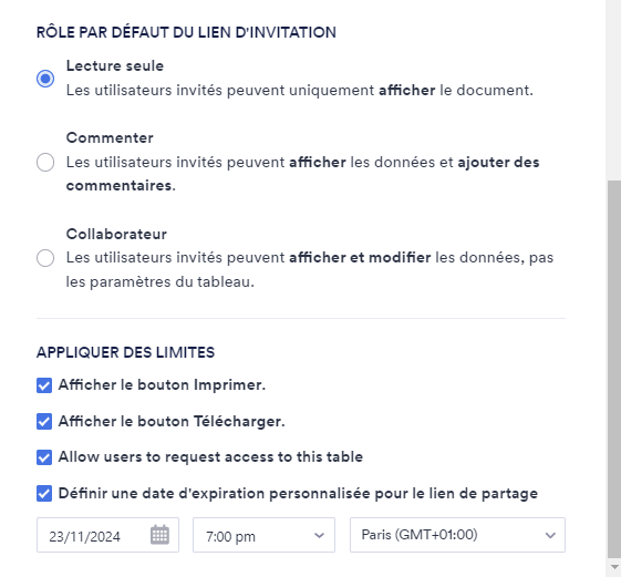 - Partager votre espace de travail avec les personnes de votre choix, tout en contrôlant leurs actions et la durée de leur accès.