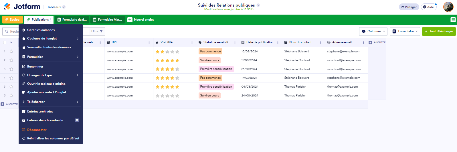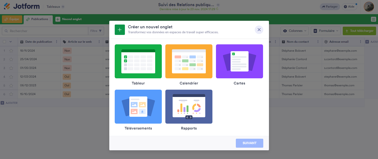 Les Tableaux Jotform révolutionnent ce processus en vous permettant d’effectuer toutes ces tâches au même endroit, et ce, gratuitement.