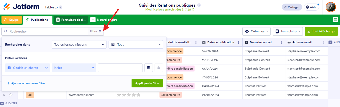 - Comment utiliser différents filtres pour gérer facilement vos données dans les Tableaux Jotform