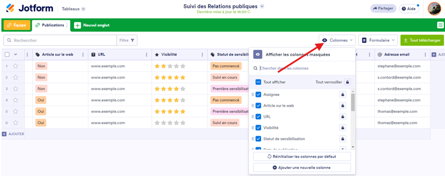 - Comment afficher et masquer des colonnes dans les Tableaux Jotform