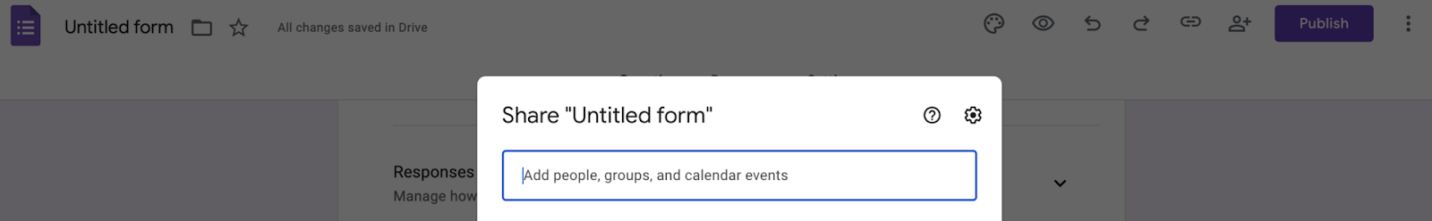 Google Forms also gives you the option to add collaborators to your form, allowing them to make edits before you finalize and publish the form. This can be done using the same Share icon at the top of the page.