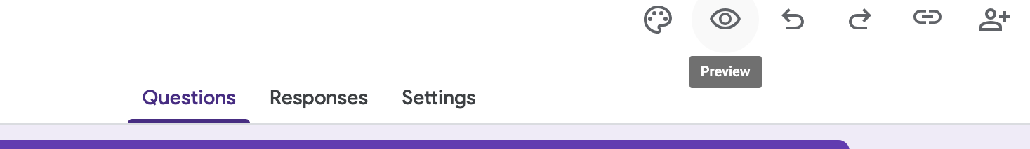 Once you’re satisfied with your questions, it’s time to share your form and start collecting data. You may first want to use the Preview tool at the top of your form to see how it will look to other users.