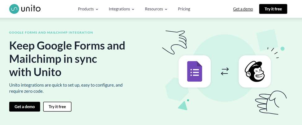 Zapier comes with templates for different Zaps between Google Forms and Mailchimp, so setup is simple and quick. Zapier has a free plan as well as three paid tiers starting at $19.99 per user per month.