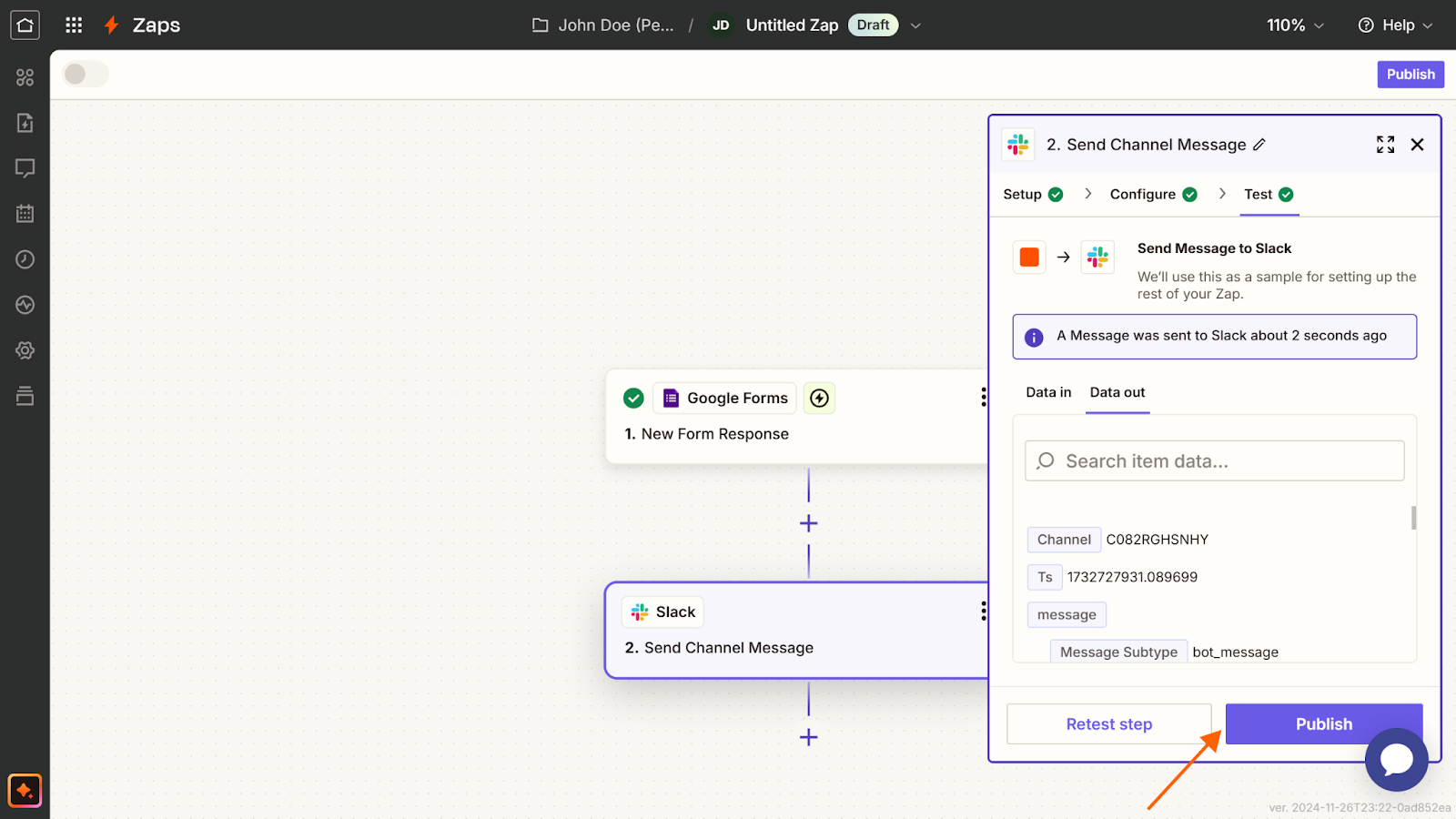 - To finalize, click the Publish button on Zapier.