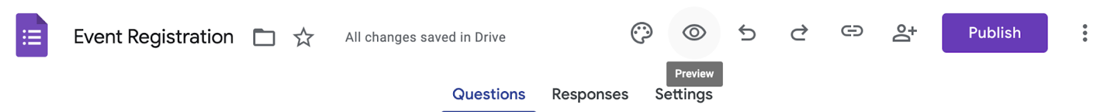 Before you share your form, it’s a good idea to preview it exactly as your respondents will see it. From the top menu of your screen, select the eye icon to open a preview in another tab.