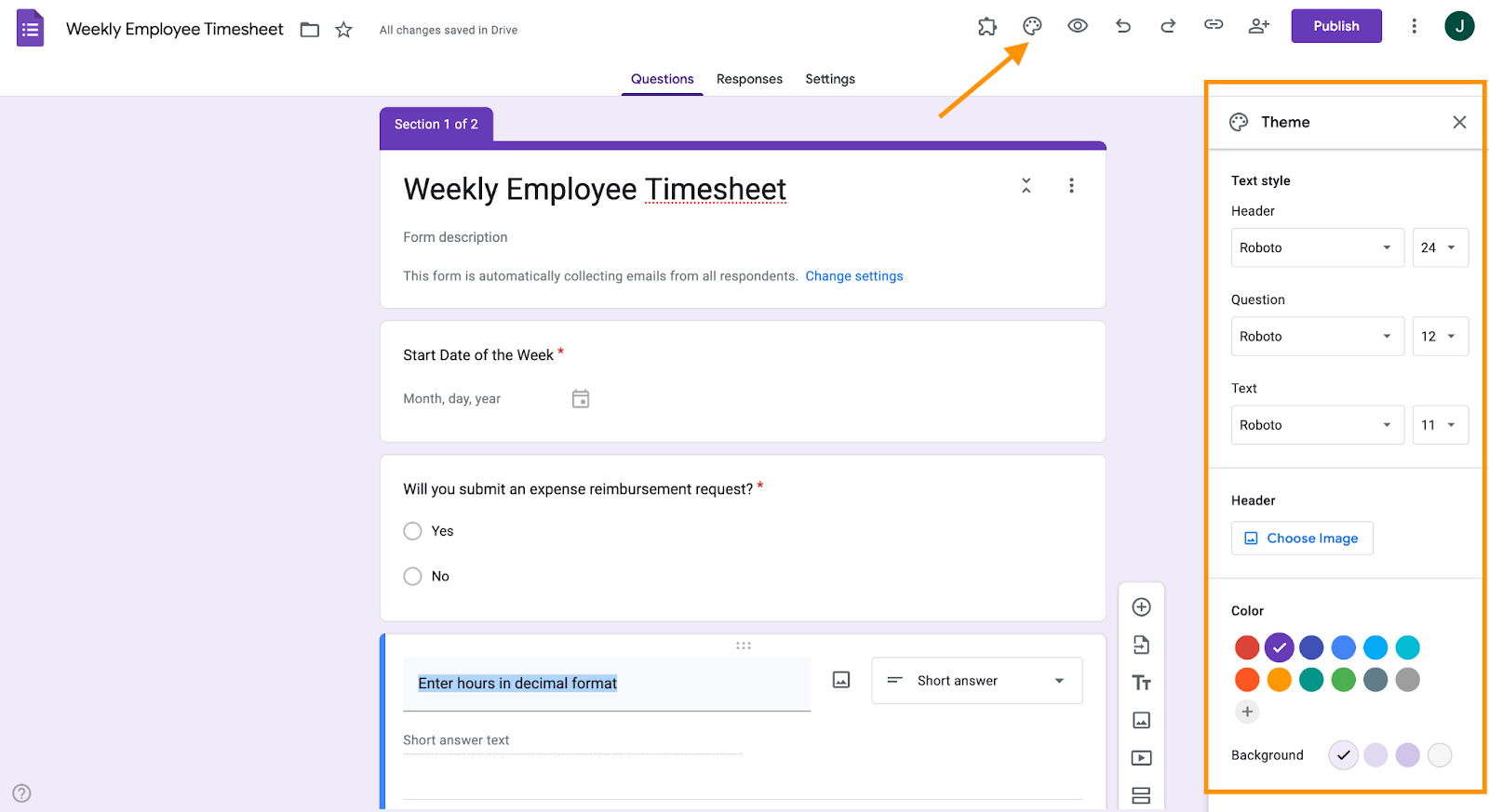 While Google Forms offers a minimalistic design, some of these enhancements go a long way in boosting usability. To ensure your timesheet captures all necessary information, customization is key: