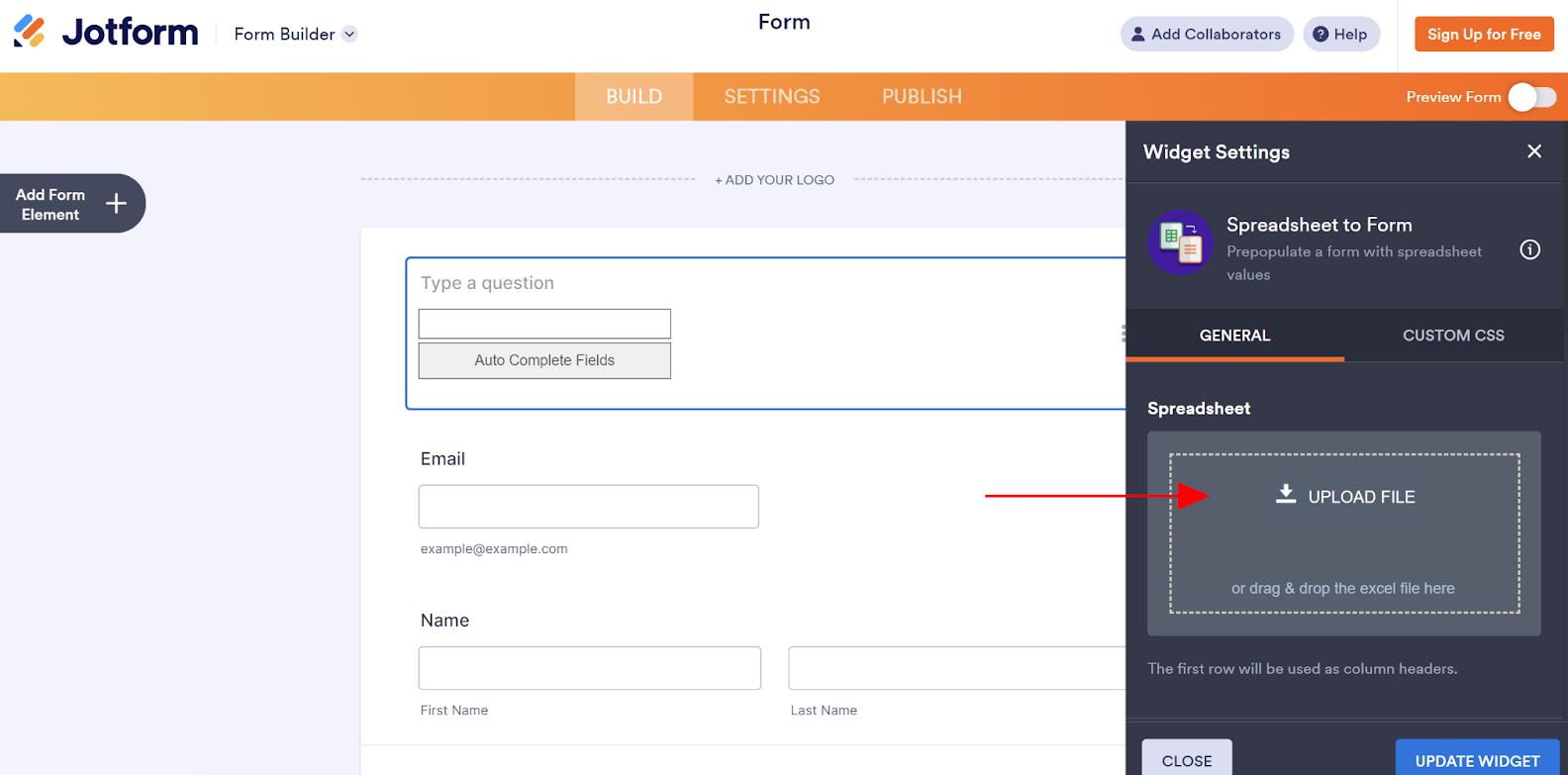 How to use the Spreadsheet to Form widget in Jotform