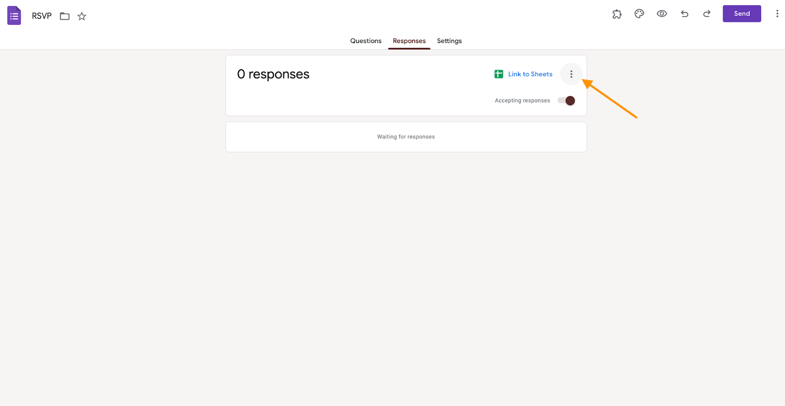 From the Responses tab, click the three-dot menu in the upper right corner.