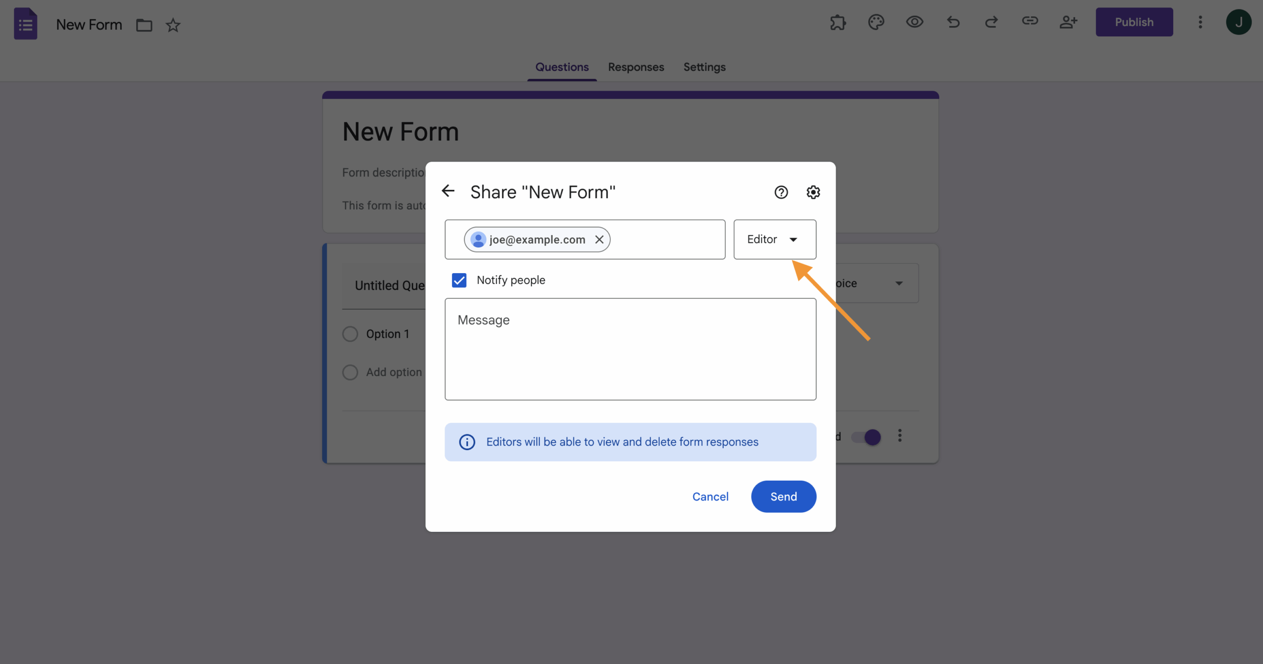 - Change their role to Editor. Then, click Send.