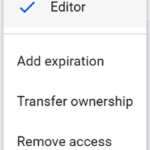 - This time, you’ll see the person you’ve just added as a collaborator. Click the dropdown next to Editor.