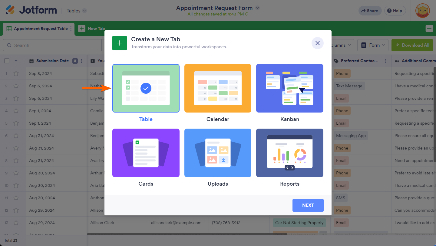 Follow these easy steps to add a blank tab to Jotform Tables: