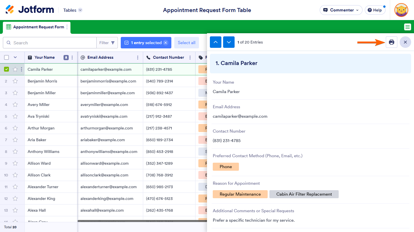 In the My Tables section of your account, you also have a bird’s eye view of who has access to your Jotform Tables.