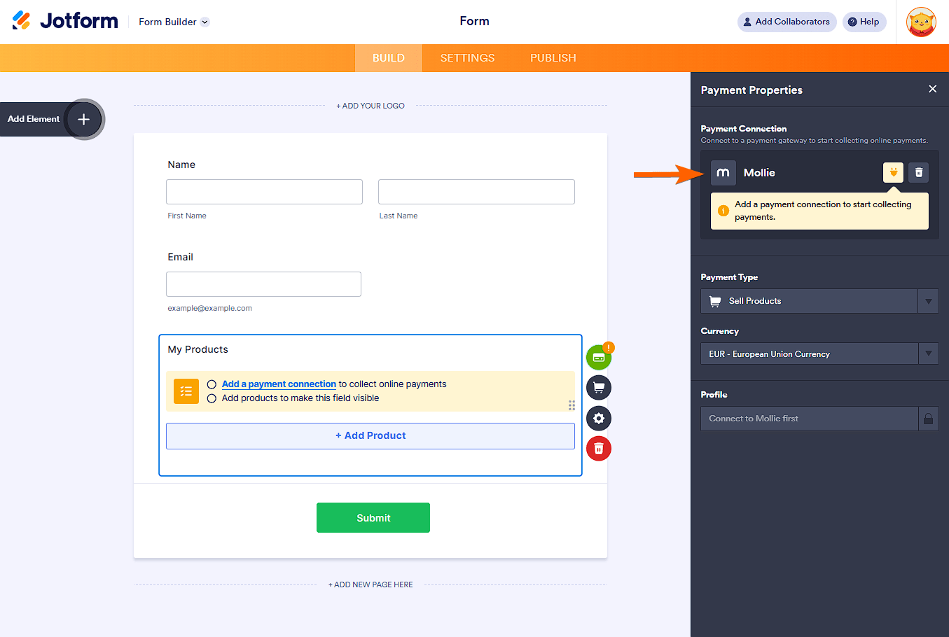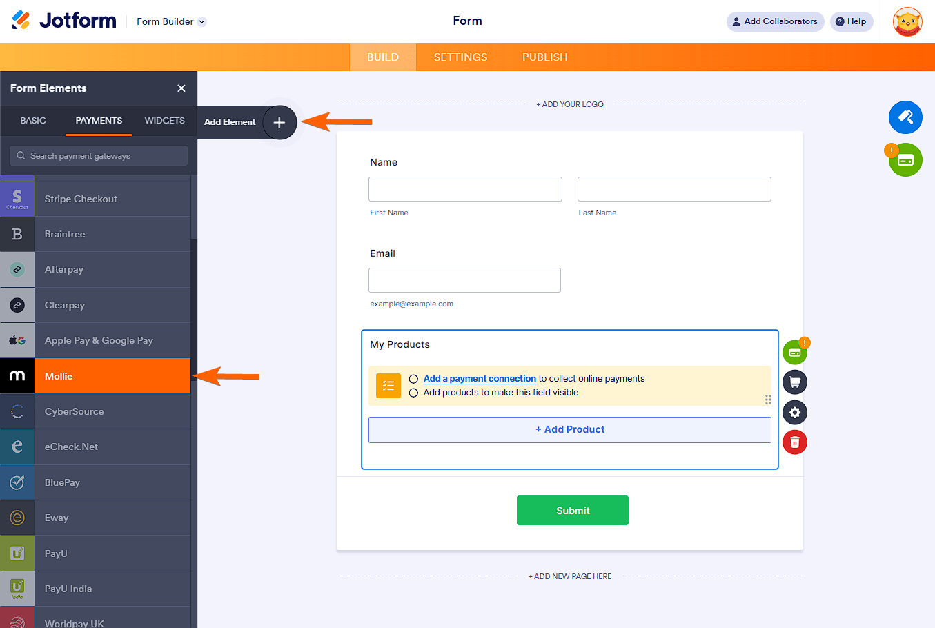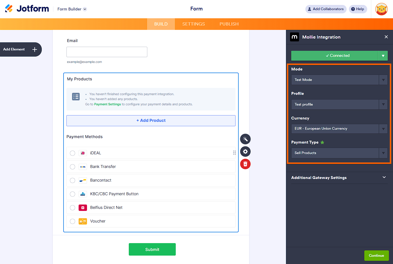 Below are the steps to integrate the Mollie payment gateway into your form: