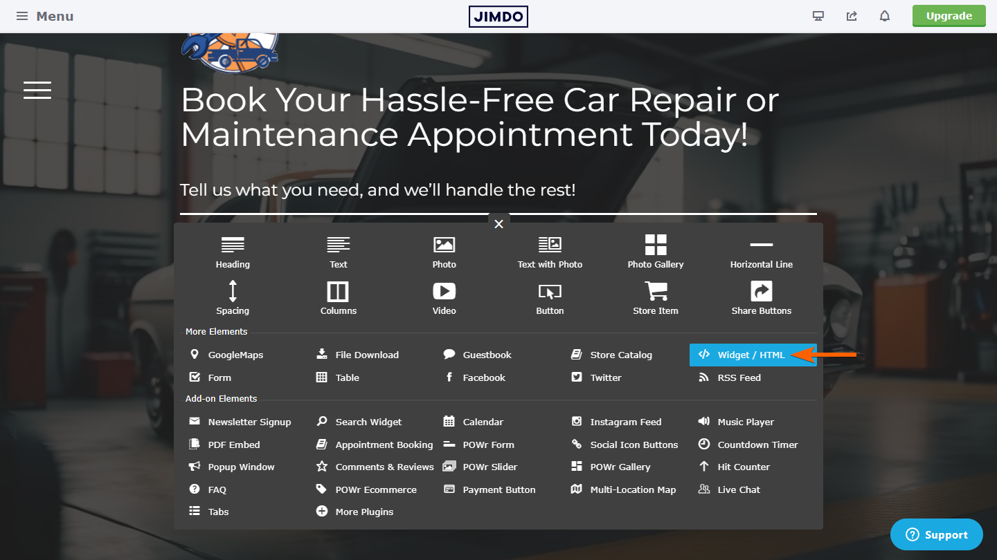 - Then, under the More Elements section, select the Widget/HTML element.