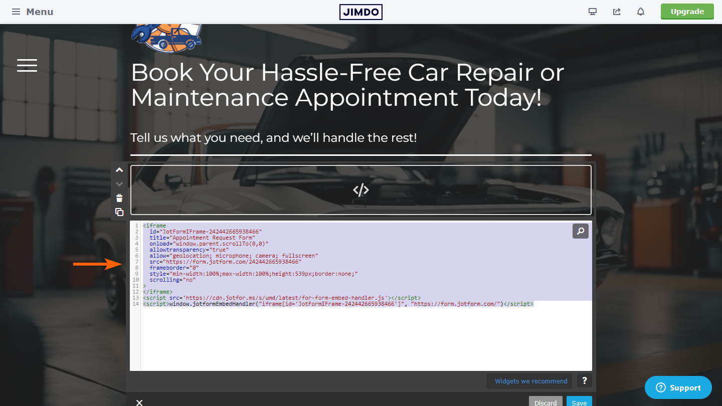 Follow these steps to copy the embed code for your Jimbo Creator website:
