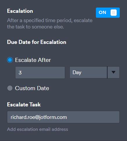 - Escalation — Automatically send the request to someone else if the primary approver fails to complete the task within the allowed period.